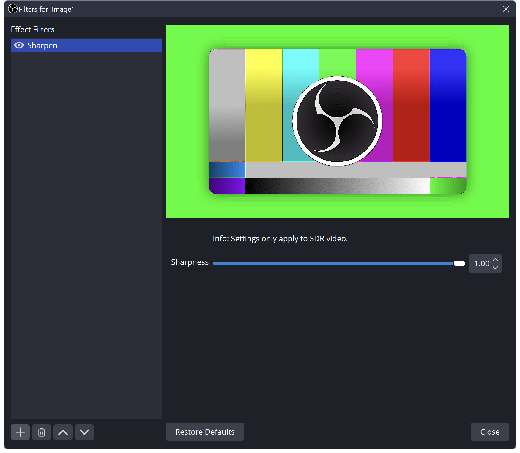 Sets the sharpness level in the image (0.0 to 1.0)